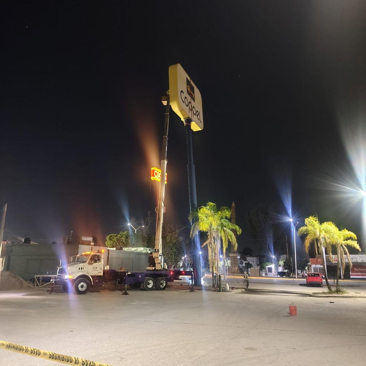 Servicio de renta de grúa para coppel. Se realizo camhio de espectacular
